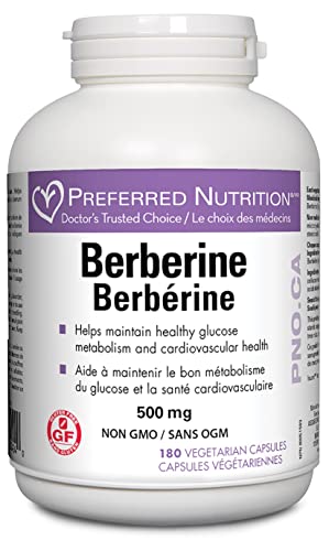 Preferred Nutrition Berberine MAXIMUM POTENCY 1000 mg per Serving (2 caps, 500 mg each) for Cardiovascular Health & Supporting Blood Sugar Metabolism. 180 vcap, 90 Day Supply