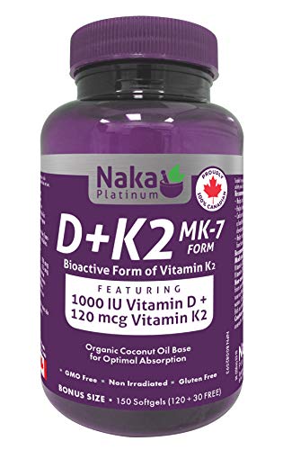 Naka Platinum Vitamin D (1000 IU) + Vitamin K2 (120 mcg) (150 Count (Pack of 1))