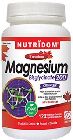 Nutridom Magnesium Bis-Glycinate 200mg – Chelated Magnesium Supplement for Bones, Teeth, Muscles, Metabolism – Non-GMO, Gluten Free, Soy, Dairy and Eggs Free, (120 Vegetable Capsules)