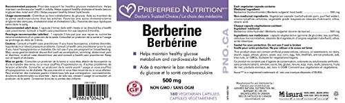 Preferred Nutrition Berberine MAXIMUM POTENCY 1000 mg per Serving (2 caps, 500 mg each) for Cardiovascular Health & Supporting Blood Sugar Metabolism. 180 vcap, 90 Day Supply